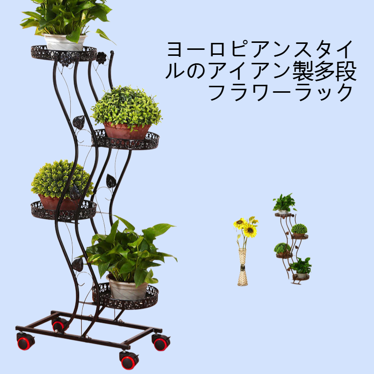 ヨーロピアン風の多層花台は、耐久性のある鉄製、空間を有効活用し、多数の植物を美しく整理展示できます。組立簡単、室内外両用。